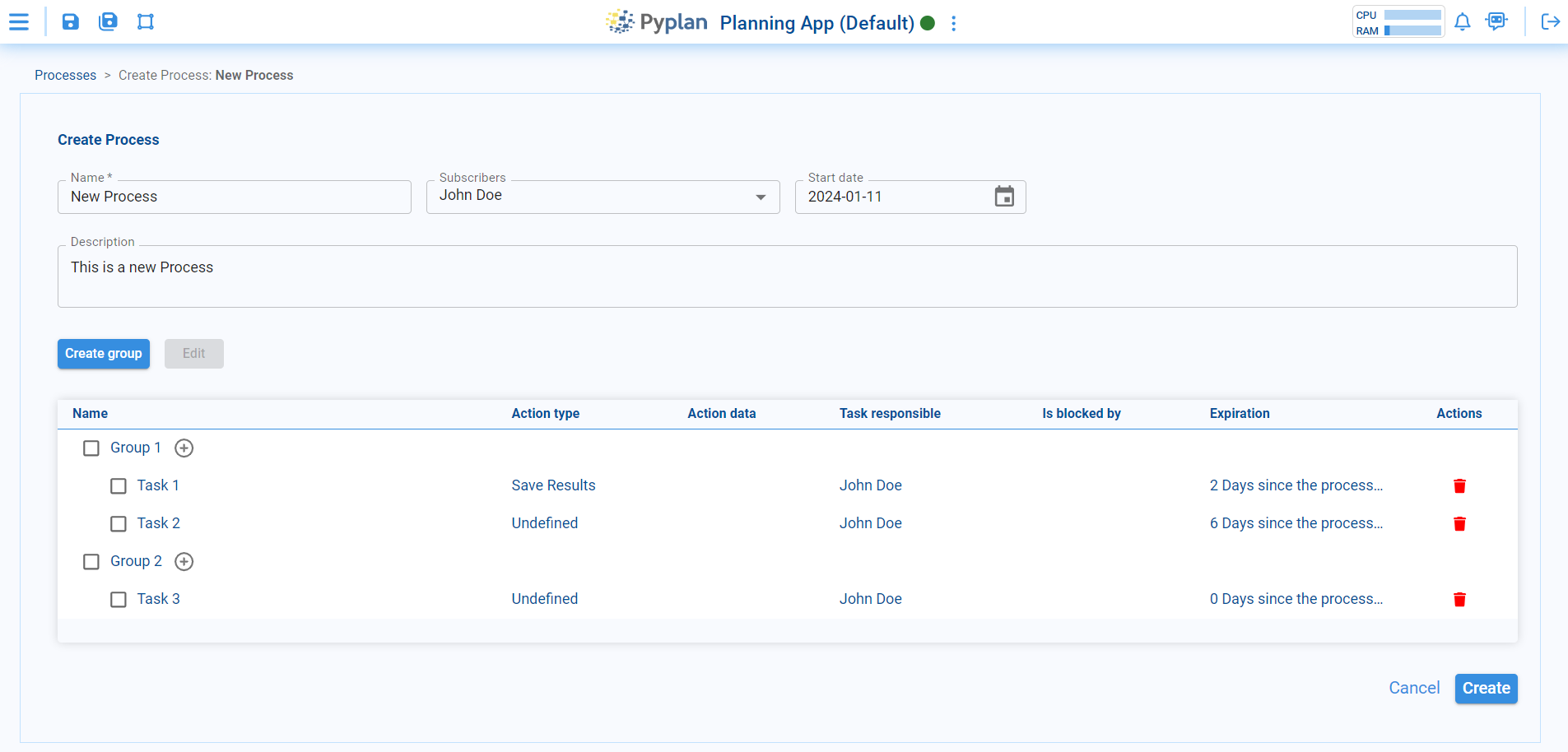 The Processes manager provides an intuitive and user-friendly interface for creating and managing processes, task groups, and individual tasks. Users can create new processes, add task groups, and assign tasks to the corresponding users. They can also designate appropriate reviewers to ensure the quality of work performed in each task.