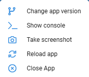 The ellipsis menu to the right of the app title opens the App menu, where we can: