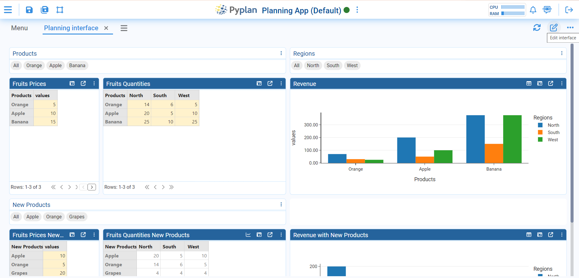 Manage input and output data seamlessly in Pyplan through intuitive interfaces. These interfaces are comprised of draggable components (widgets) available in a toolbox, facilitating easy customization on the interface screen. The components establish ongoing communication with calculation rules, fostering real-time interaction between users and applications. Instant computation of any modification to an input parameter ensures prompt presentation of the output result to the user.